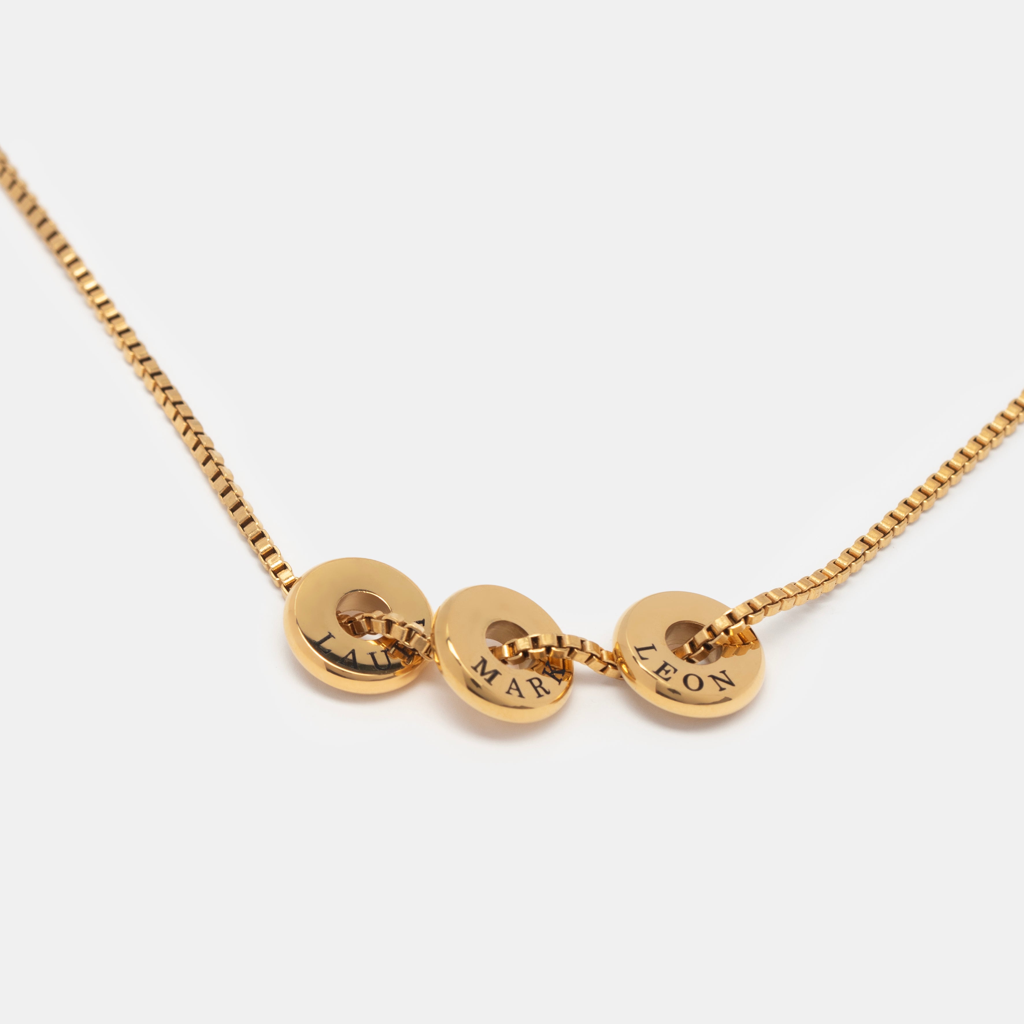 Each pendant circles your heart with meaning—add names, dates, or words that matter most. This necklace turns your story into something beautiful, in gold, rose gold, or silver.