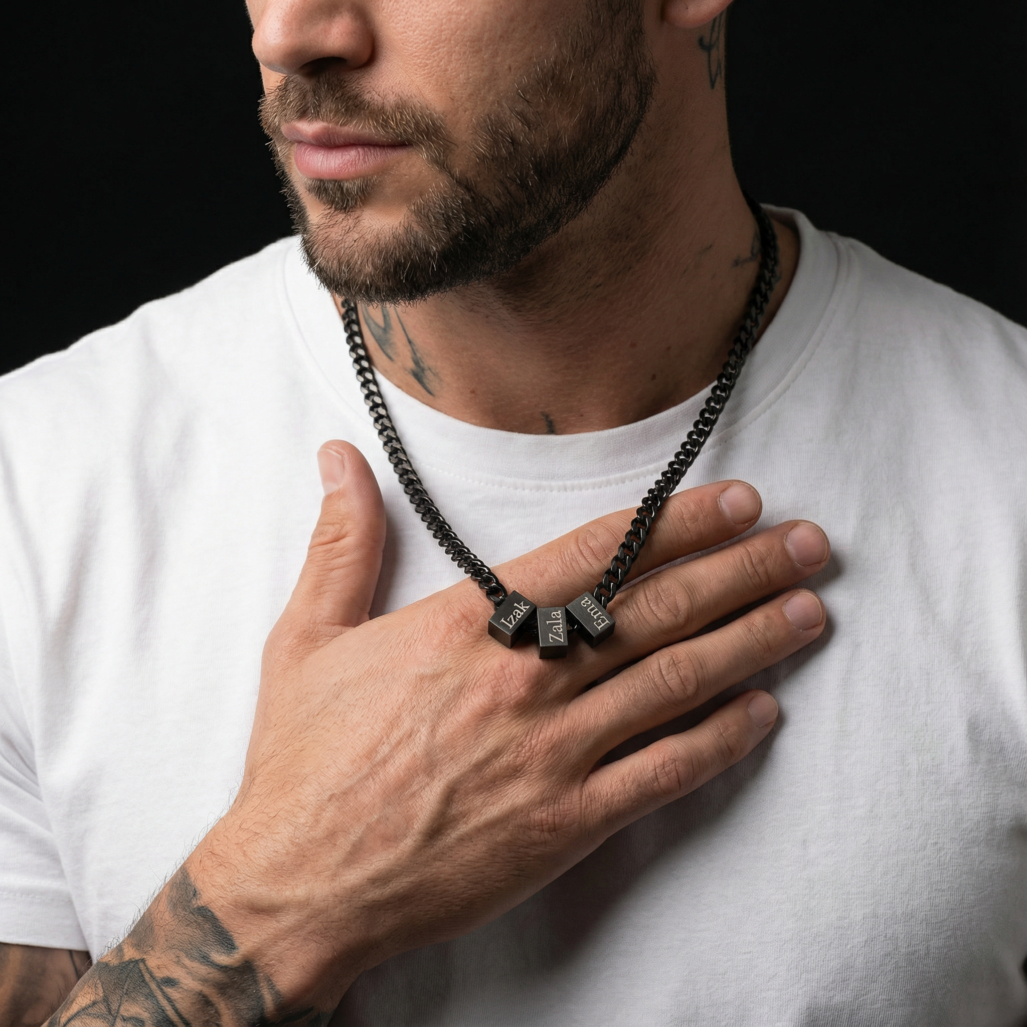 Ovo nije samo komad nakita, već svakodnevni podsetnik na neraskidivu vezu između oca i njegovih voljenih. Personalizuj do šest perli sa imenima najmilijih i pretvori ovu elegantnu čeličnu ogrlicu u trajni simbol ljubavi, snage i porodice. Bezvremenski poklon koji će svaki otac nositi s ponosom, uvek blizu svog srca.