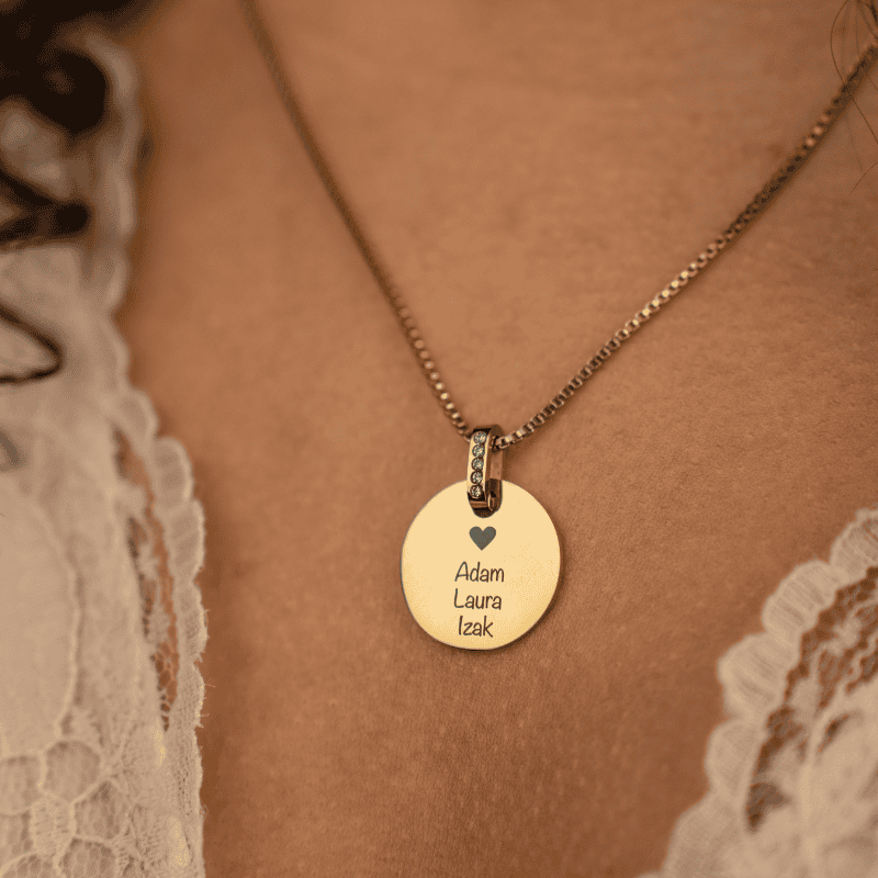 Imena koja voliš, ugravirana u elegantnu, sjajnu ogrlicu.